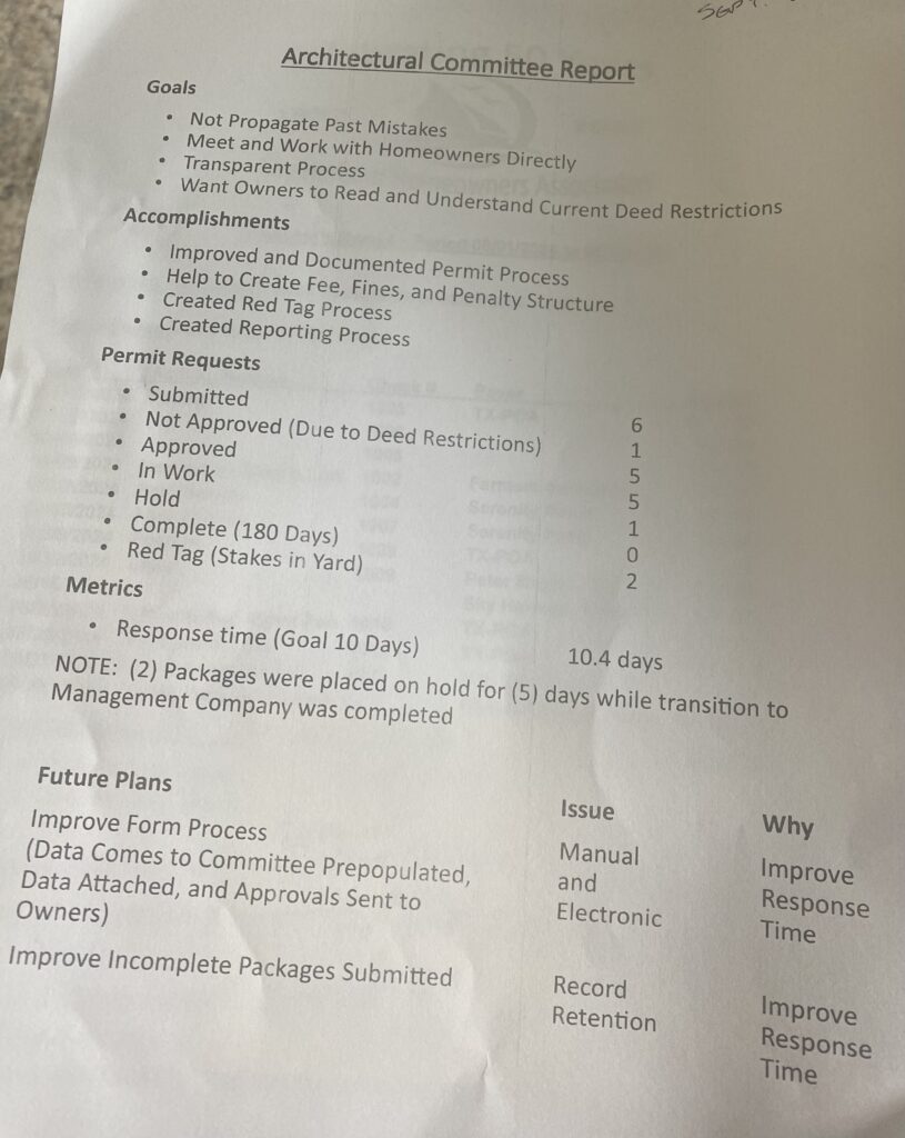 If you want to know more about the community, and are looking for ways to get more involved, why not consider joining one of the many active committees here in Sky Harbour?  SHHOA committees assist the board with specific areas of responsibility, and bring information to the board which can result in decisions and actions.