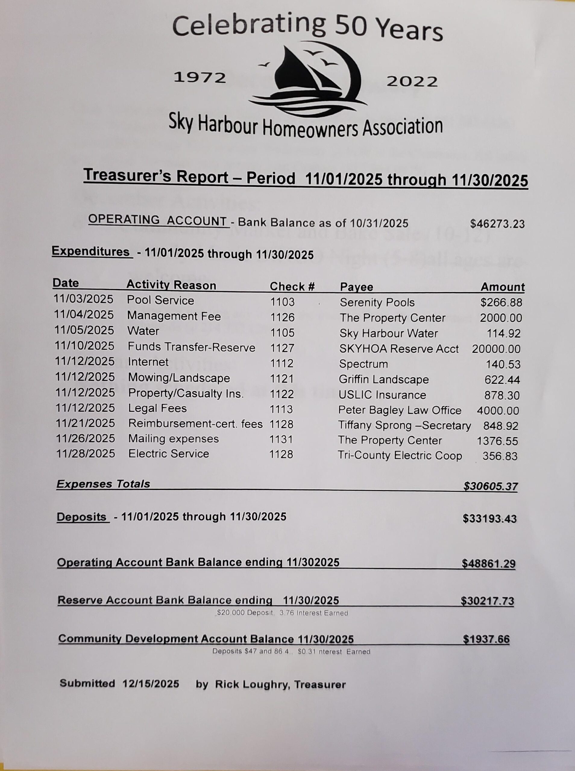 SHHOA Board Meeting Minutes 11-17-25